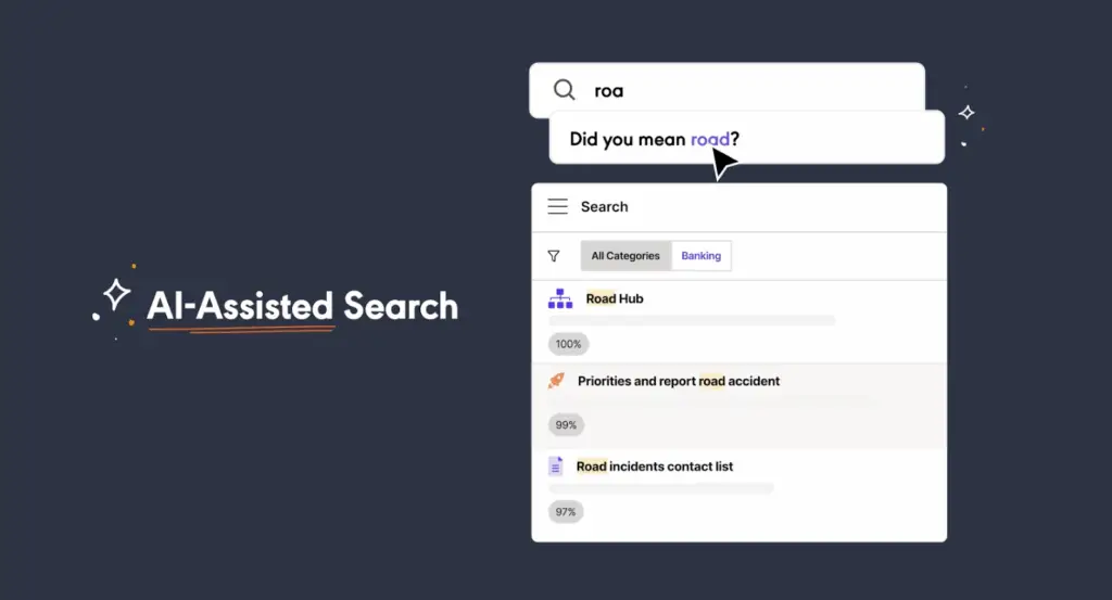 An AI-driven search that understands intent, not just keywords. It interprets natural language queries and ranks the most relevant results at the top so agents see the right answer first.