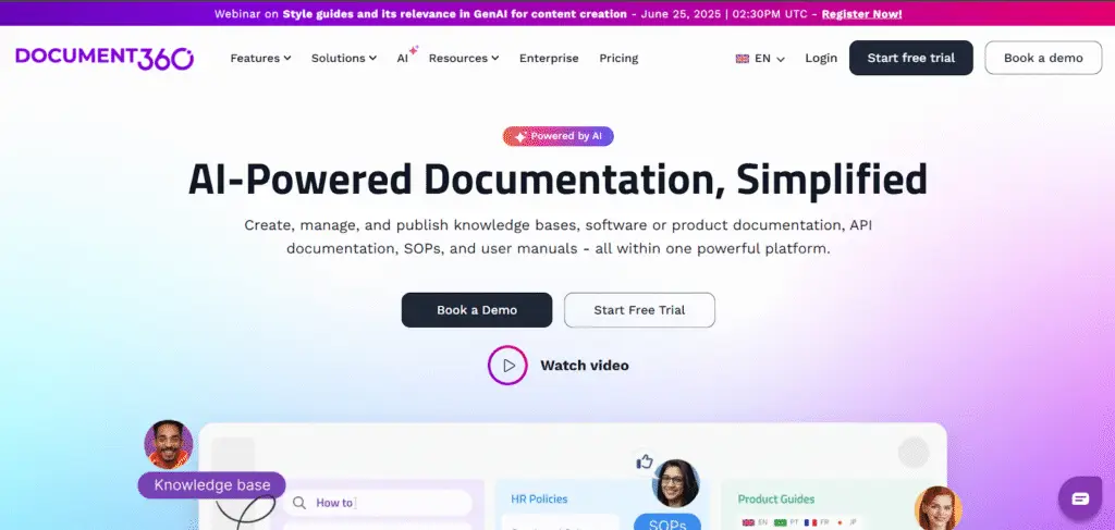 Why Document360? Provides controlled publishing workflows and multilingual support for global teams.