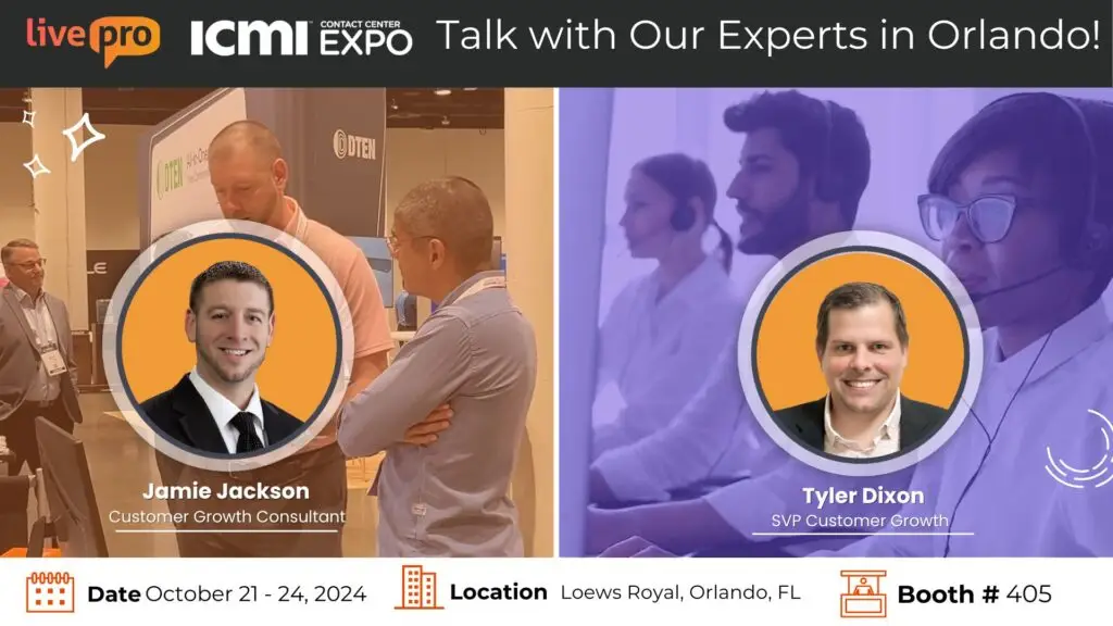 Join the livepro North America Team in Orlando, FL for the 2024 ICMI Contact Center Expo. Booth# 405. Book a demo and let’s discuss contact center solutions!