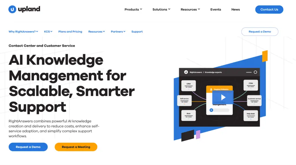 RightAnswers is a product by Upland Software. It’s a knowledge management platform designed for IT service desks and organizations following the Knowledge-Centered Service (KCS) methodology. It’s the only KCS v6-certified knowledge management tool available.