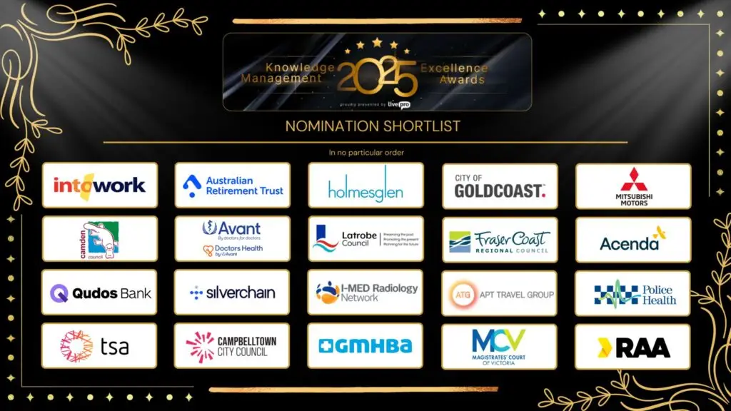 We’re thrilled to announce that nominations for the livepro Knowledge Management Excellence Awards 2025 are now officially closed. This year’s response has been extraordinary, with over 60 submissions received across five categories from more than 20 leading organisations across Australia. Outstanding Entries Across Diverse Sectors The calibre of this year’s entries has been truly exceptional. […]